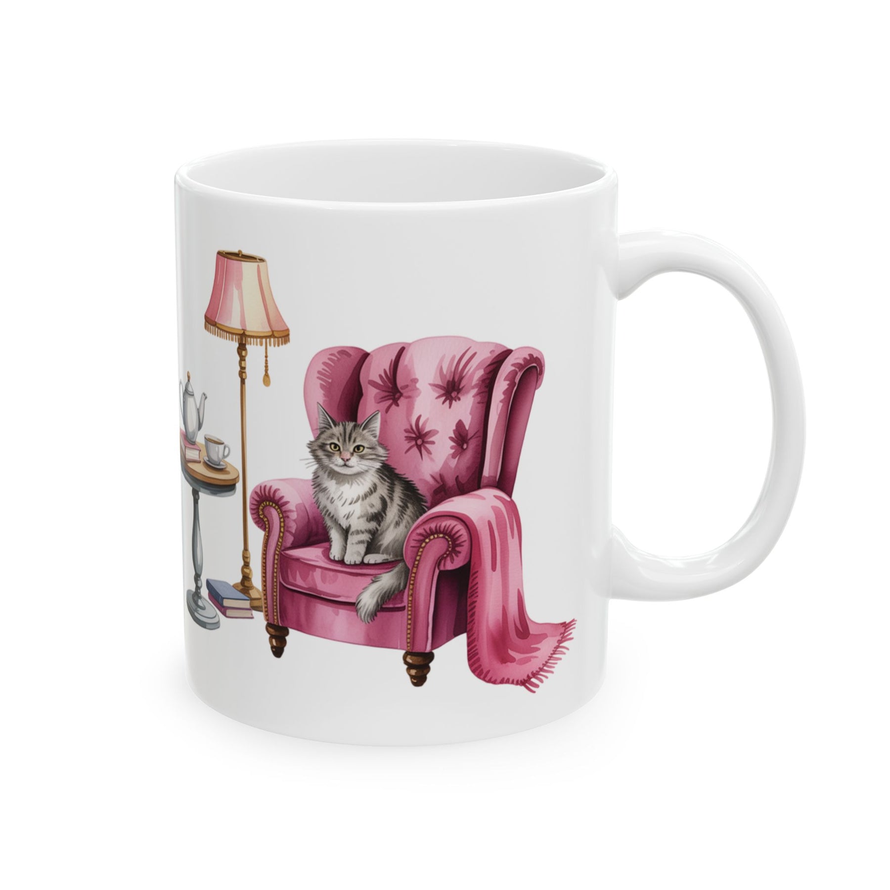 Vintage Cozy Cat – Ceramic Mug 🐈